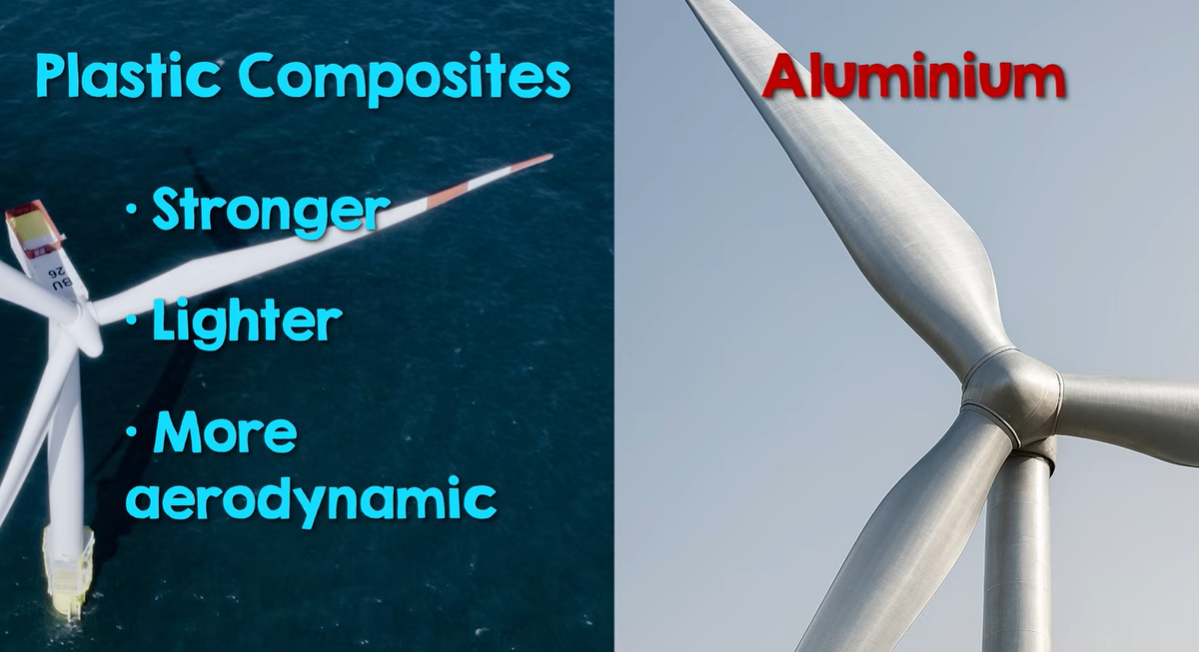 Plastic composites are also used in wind turbine blades.