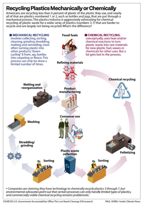 In many cases, only a small fraction of chemically recycled plastics become new plastic products.